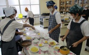 2年生は家庭科の「私たちの食生活」の学習のまとめとして、調理実習に取り組みました。メニューはスパゲッティミートソースとコンソメスープとオレンジゼリー。材料を切る音や湯気の立つ香りが調理室に広がる中、事前に決めた役割分担 […]