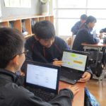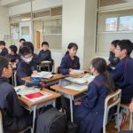 中部地方「東海地域の工業」の単元で,自動車工場を建てるのに適している場所について考察しました。生徒は土壌・河川などの地形、大都市との距離、交通網などの諸資料をもとに、トヨタ自動車の本工場がなぜ挙母市(現在の豊田市)に作られたのかについて意見を出し合いました。各班、白熱した議論を交わしながらまとめた意見を、授業の最後にクラスで共有しました。工場立地に必要な条件について,議論を通して学ぶことができたようです。