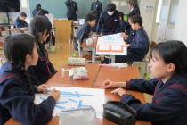 総合学習(研究会活動)では,現在,文化発表会に向けて,展示作品や舞台発表の仕上げが進んでいます。半年間の活動の成果をしっかりと発表できるよう,互いに協力しながら,よりよい表現や仕上がりをめざしています。