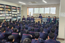 「意見発表」は,生徒全員が自分の考えや感じたことを言葉にして伝える,本校伝統の取り組みです。生徒は,身近なことから社会的な課題まで,それぞれが関心のあるテーマを選んで原稿を作成しました。