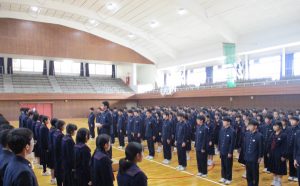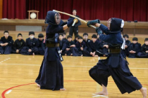 1月23日(金)、5日間にわたる寒稽古の締めくくりとして、納会を実施しました。 納会では、合氣道選択者が授業や寒稽古を通して身に付けた技を発表し、剣道選択者は学年ごとに「木刀による基本技稽古法」を披露しました。これまで積み重ねてきた練習の成果が、一人一人の動きから感じられる時間となりました。