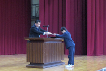 3月21日(土)、令和7年度修了式を行いました。式に先立って行われた表彰式では、英語検定の各級の成績優秀者をはじめ、剣道部や北九州エコメカアイディアコンクールの表彰が行われました。また、この1年間健康に留意し無遅刻・無欠席で過ごした生徒に、皆勤賞が授与されました。