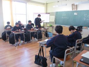 2年生の国語科では,文法の単元のまとめとして,動詞の活用表をグループで完成させる活動に取り組みました。 グループ活動では,わからない部分を得意な生徒に質問し,友達の説明を通して理解を深めていく姿が見られました。一方, […]