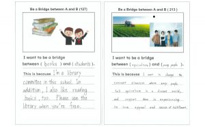 3年生英語の授業では、「Be a Bridge between …(〜と〜の架け橋になろう)」をテーマに、自分がつなぎたいものを英語で表現しました。 「Books(本)」と「Students(生徒)」をつなぐ司書を目指 […]
