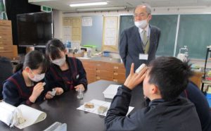 1年生の理科では「地層から読み取る大地の変化」の学習の一環として,さまざまな岩石の観察を行いました。泥岩や砂岩,チャートなどの標本を使い,触ったときの質感や重さ,粒の大きさなどを手に取って調べました。また,ルーペを使っ […]